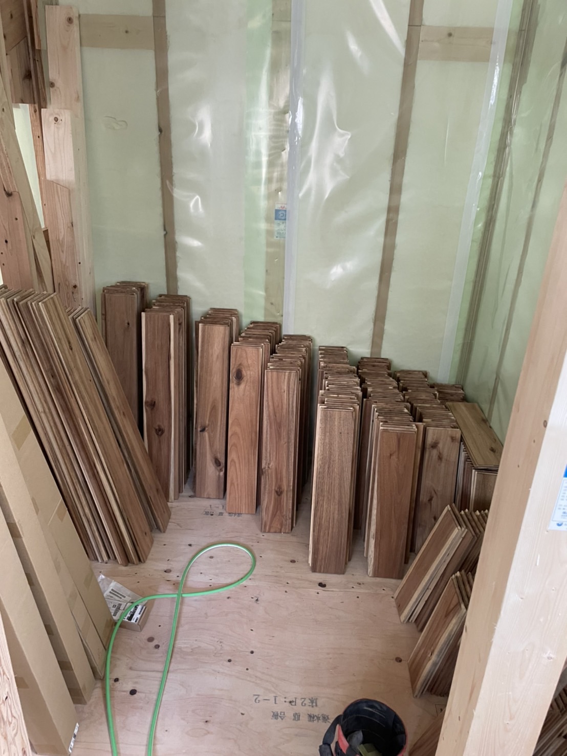 大工さんが無垢フロアの施工をされていましたが、