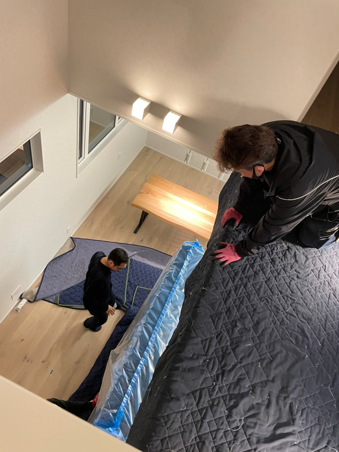 とにかく傷つけないよう慎重にシュミレーションして搬入。