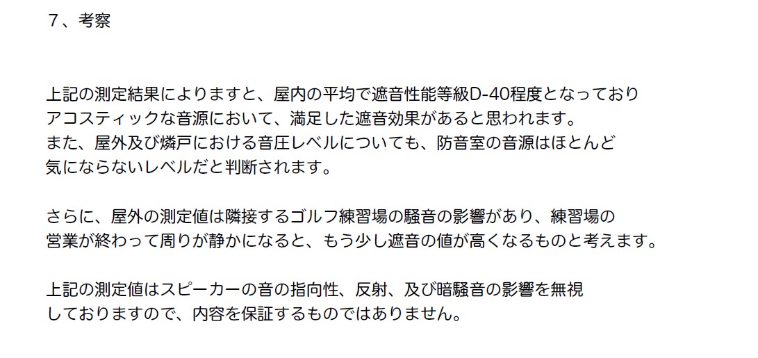 もちろん防音室の測定も行いしっかりとした遮音レベルまではかりました。
