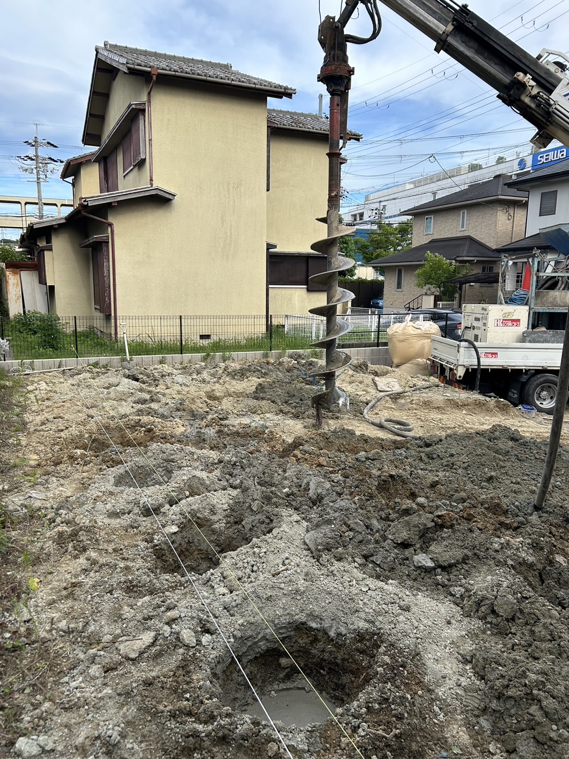 天気も晴天の中 無事に完了しました。 後は養生期間を設けて基礎工事にかかります。