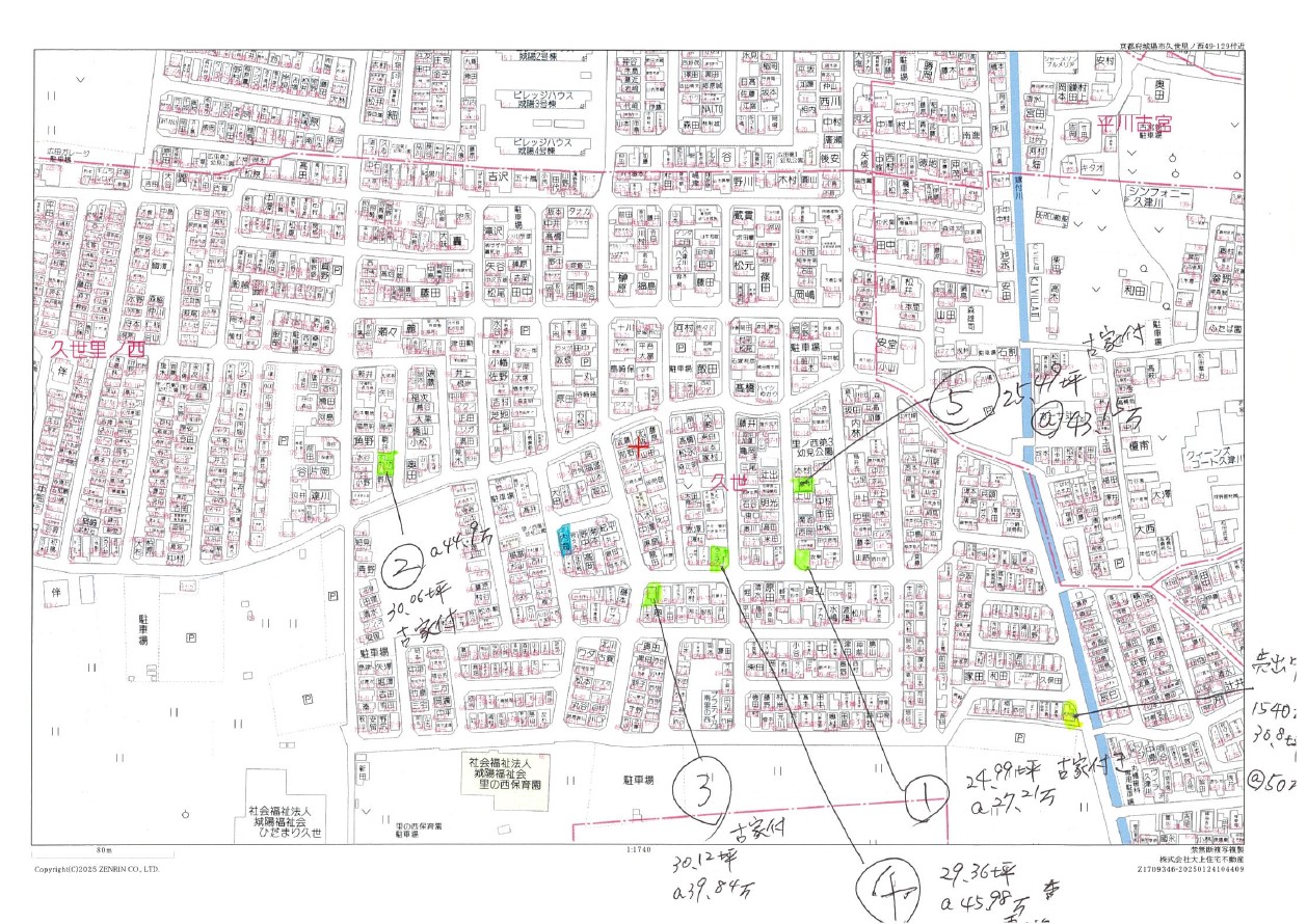 青色が今回、仕入れした物件です。