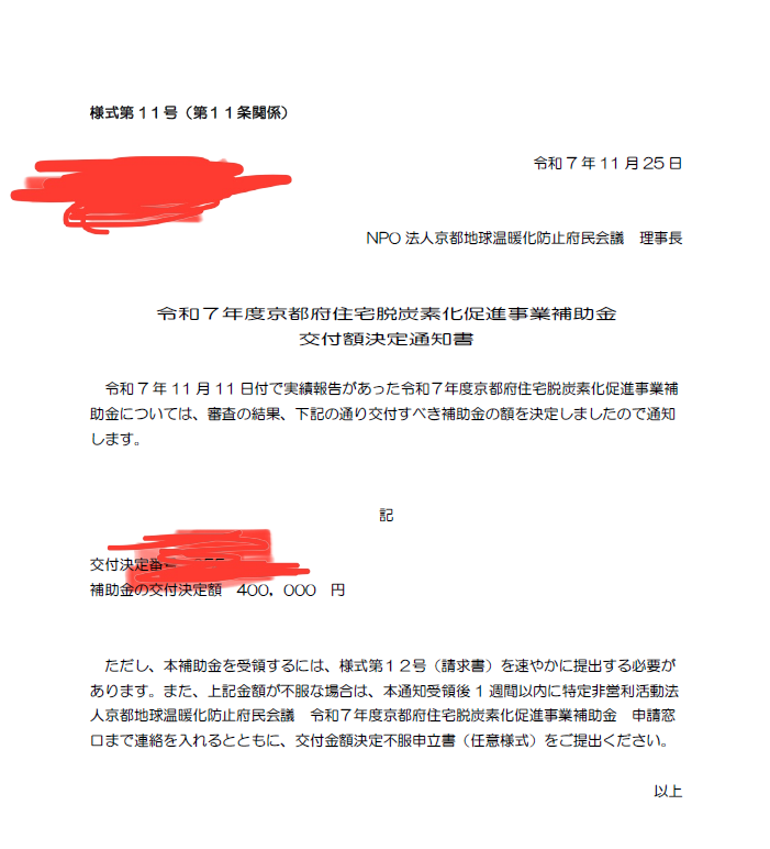 今回も無事に申請通過⇒住まい手さん補助金40万ゲットできました。