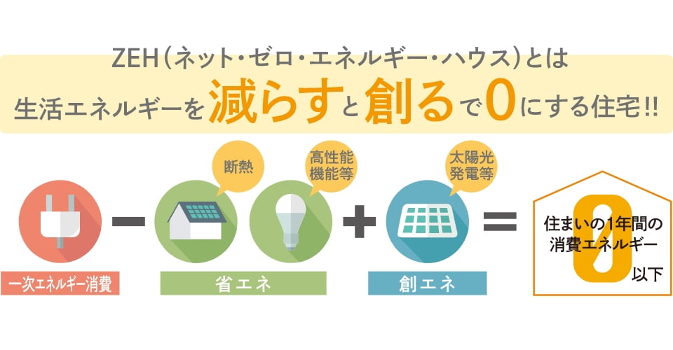 一次エネルギーとは、石油・石炭・原子力・天然ガス・水力・地熱・太陽熱などの加工されない状態で供給されるエネルギーのことで、家庭で消費される電気やガスの使用量を減らすことにより、一次エネルギー消費を減らすことにつながります。※弊社では、ZEHの取得はオプションとなっております。
