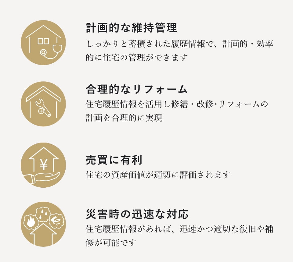 大上住宅不動産では、設計・竣工時の仕様情報から修繕・補修などの住宅の履歴情報を維持管理に役立てています。