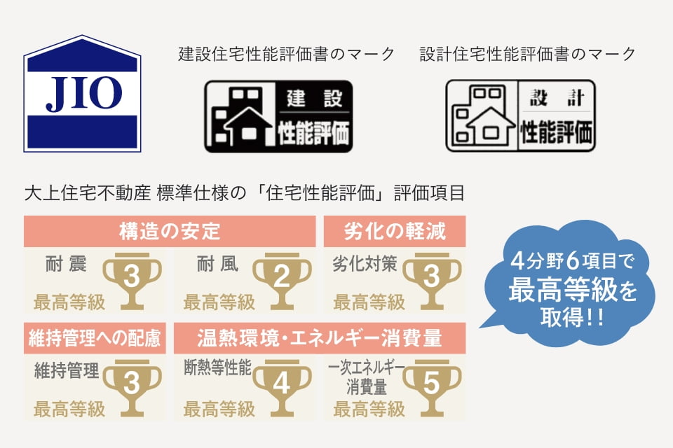 JIO(㈱日本住宅保証検査機構)による住宅性能評価を2種類取得!