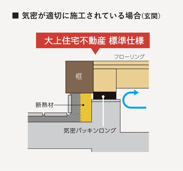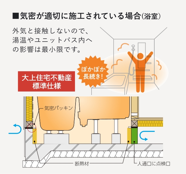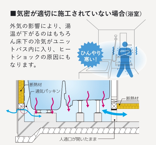 玄関・浴室まわりの気密化は断熱性向上のために必須(床断熱仕様の場合)