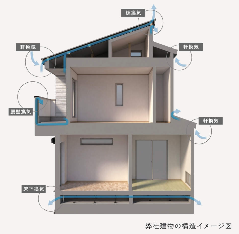 結露などによる構造材等の劣化や白蟻や腐朽菌のリスクも抑えます。