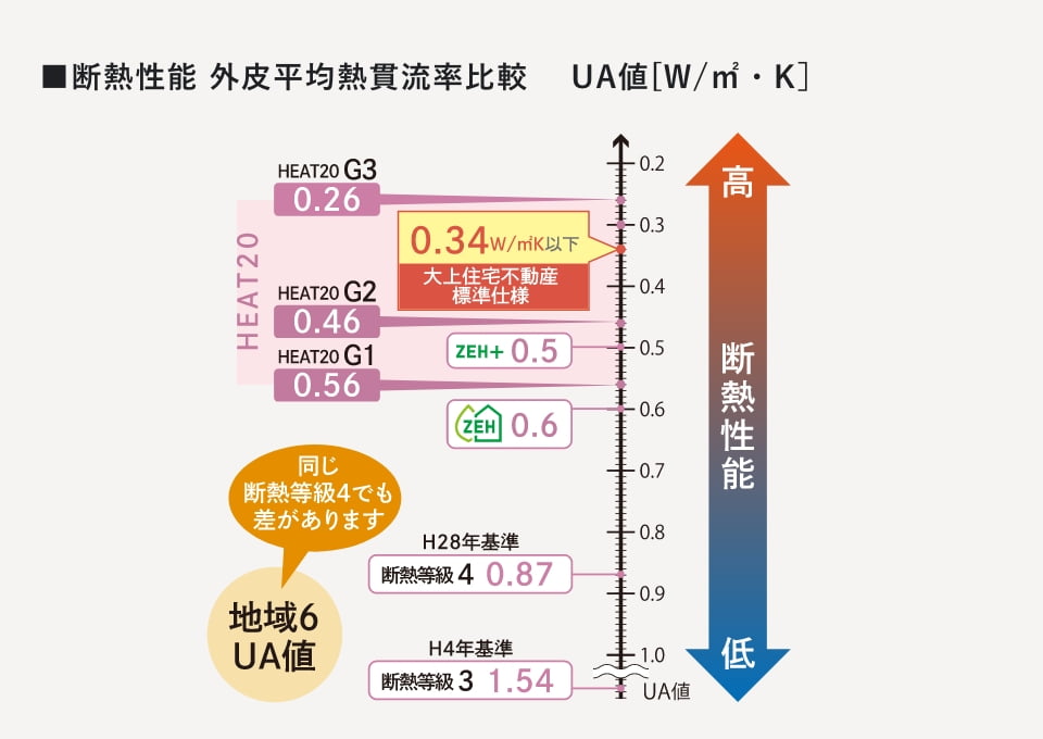 HEAT20 G-2水準を超えるUA値の断熱性を実現