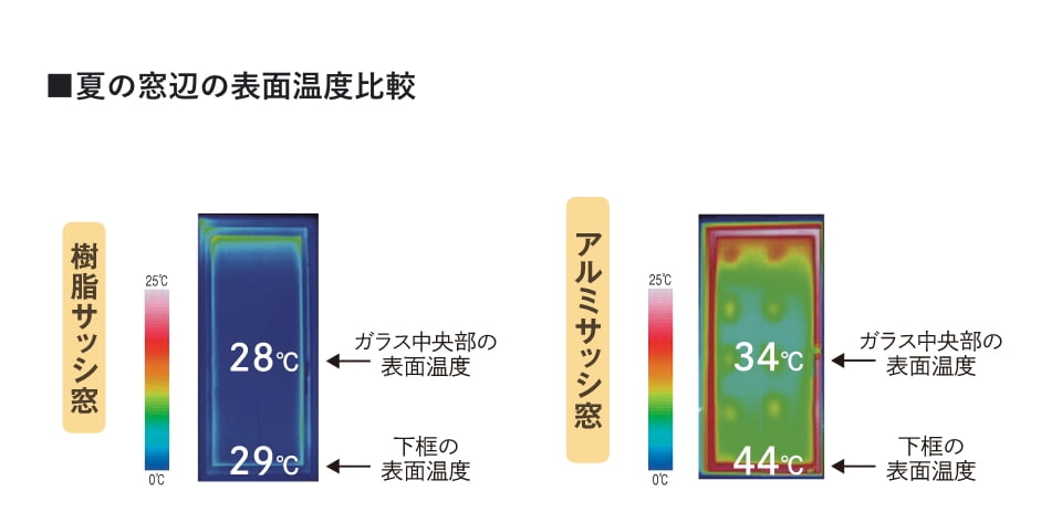 試験画像:室外温度35℃/室内温度25℃(実験値)、樹脂サッシ窓APW430(日射遮断型)使用