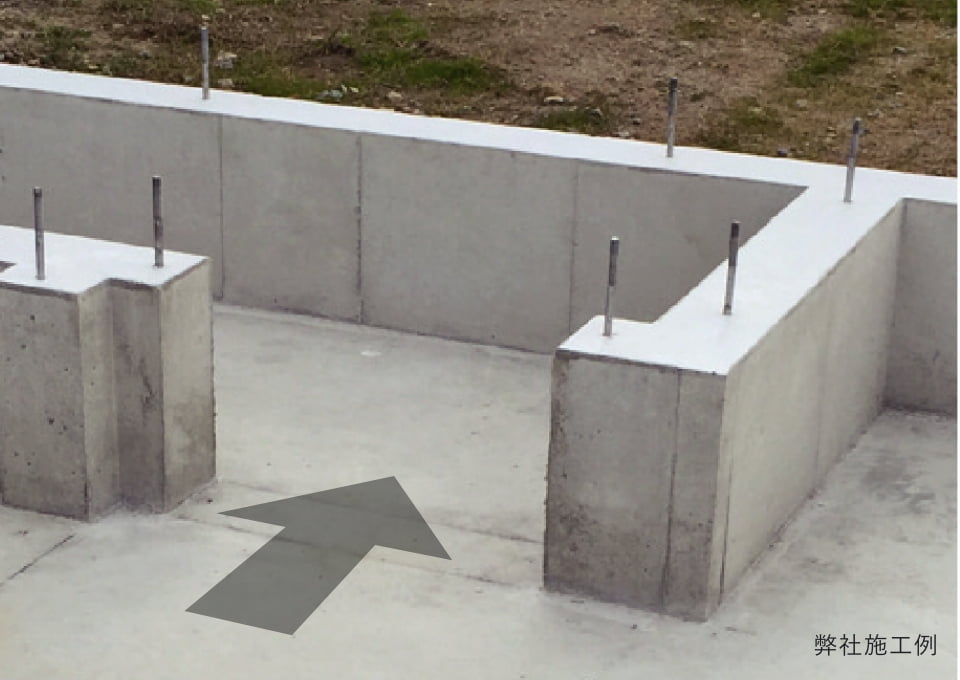 ベタ基礎の底全体に防湿フィルムを施工する事で、基礎下からの湿気を防ぎ、基礎の強度を保ちます。また、床下への湿気を防いで、土台の腐食やシロアリの発生も抑えます。