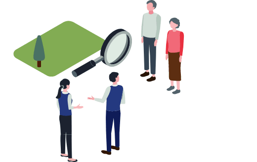 ご希望物件の現地調査を実施します。お客様と共に物件や土地を見学に参ります。さらに、その土地、物件に関しての詳細情報は良い点も悪い点もすべてご説明いたします。