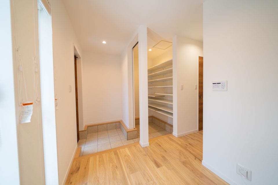 素足でも気持ちの良い肌触りであること、フローリングよりも温かみがあり、お子さんが歩き回っても安心な天然素材であることが、無垢材を選ばれたポイントです。