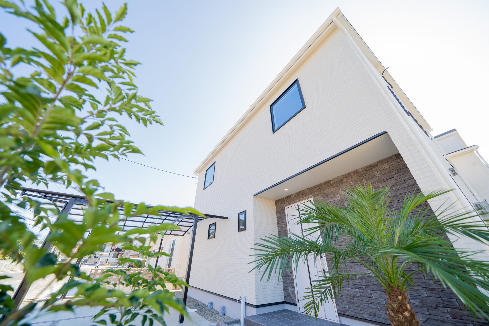 間口が広々とした場所に南国風の植栽を植えました。