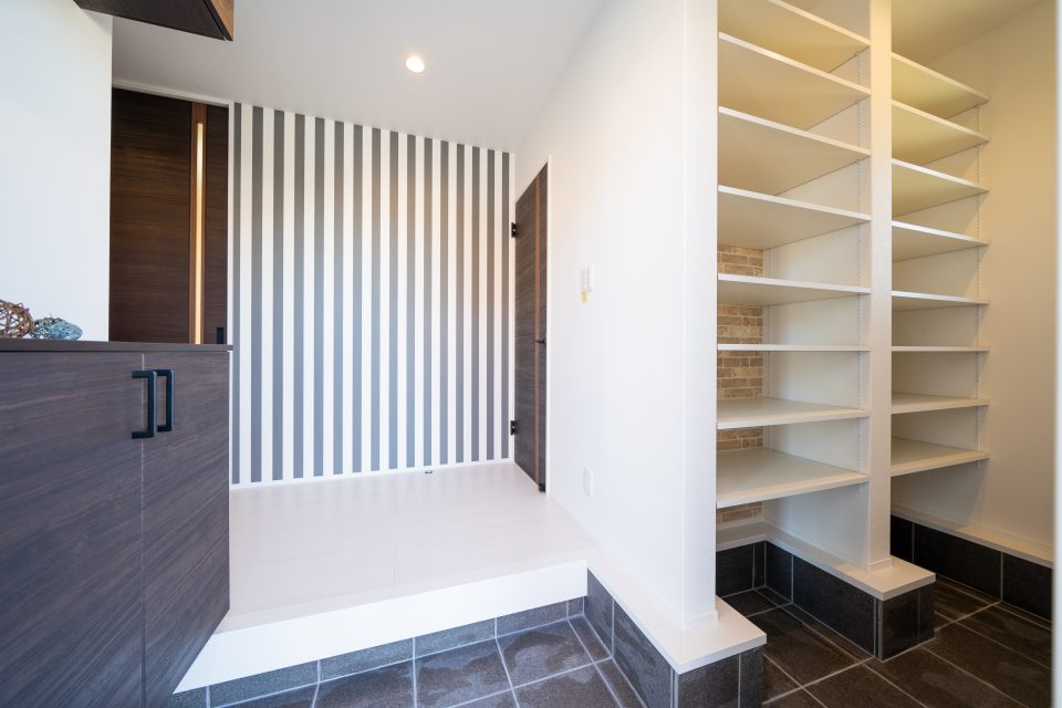 玄関入口には施主様こだわりのクロスがお出迎えしてくれます。