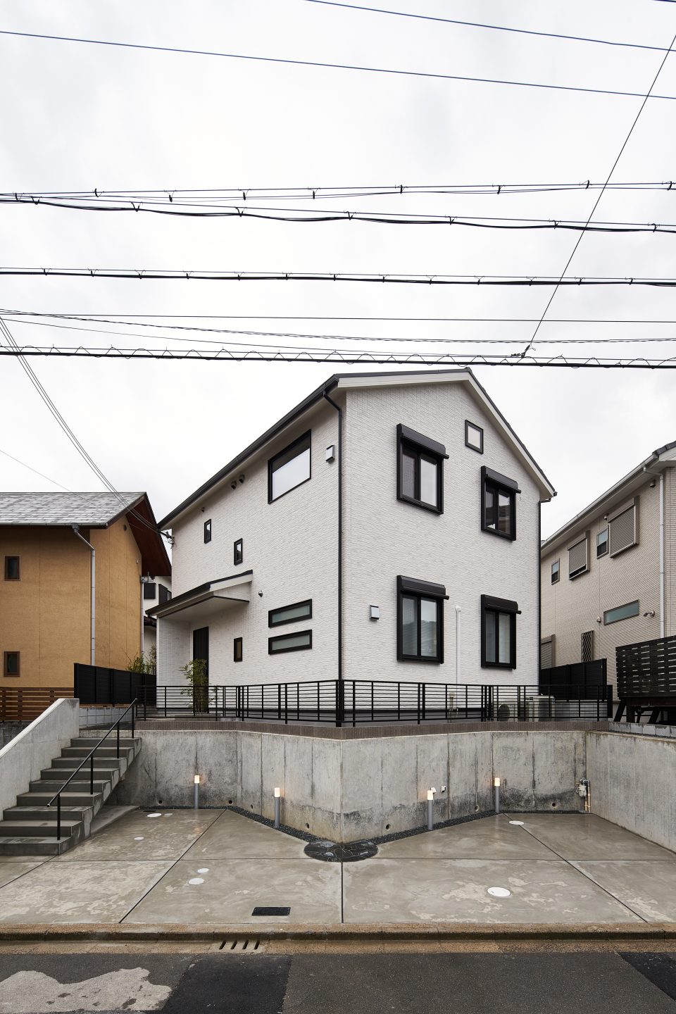 道路に平行に建てると駐車3台可能だが