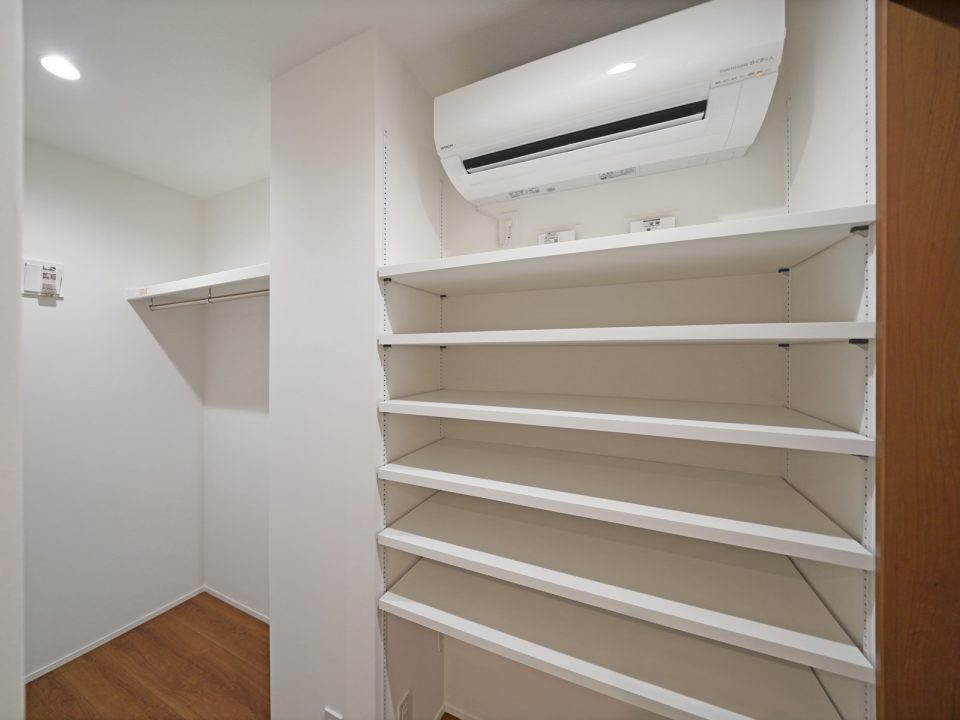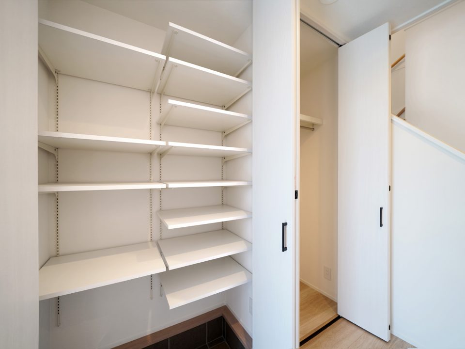 棚板を自由に調節できる可動棚で、収納できるものの幅も広がります。