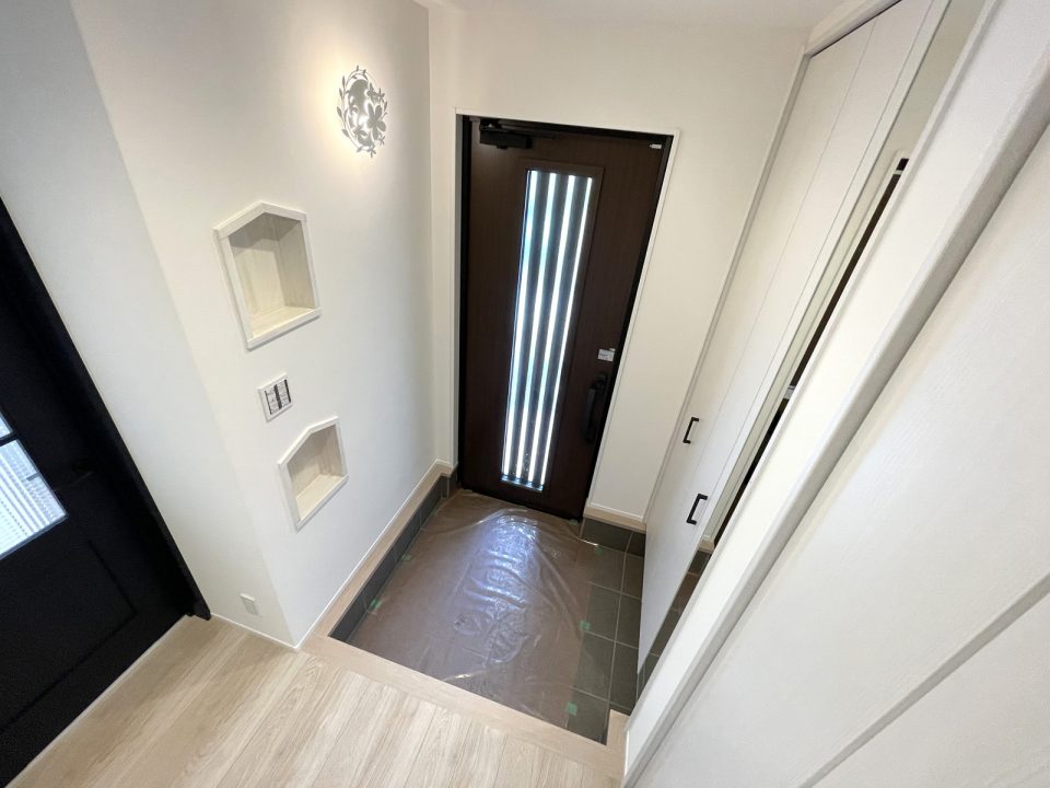 回廊型動線のお家は、調湿性の高い珪藻土クロスの壁やたくさんの収納設置など