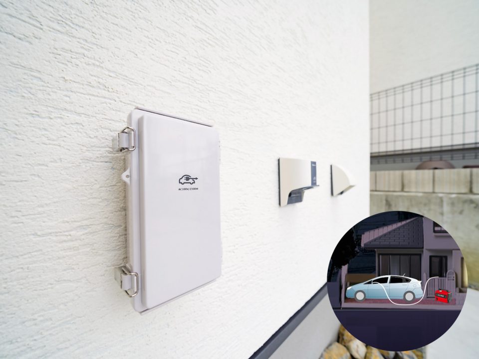 エコカーから停電時にも電気供給ができるシステムです。停電時100V/1500Wまでの電気供給が可能です。