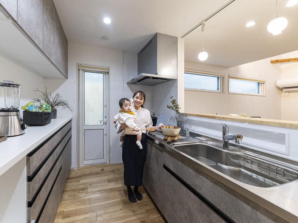 家族とのコミュニケーションがとりやすい対面キッチン。