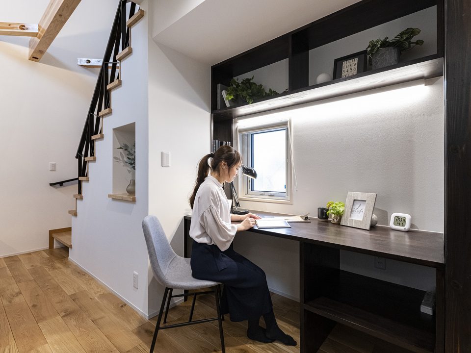 家族の気配を感じながら仕事ができるようにリビングにワーキングペースを設置しました。