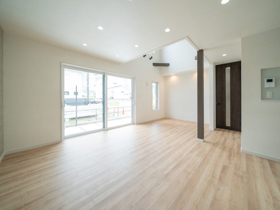 広々としたリビングは、自然エネルギーをふんだんに取り込む設計により、日射をコントロールし冷暖房機器を過剰に使用しない住まいを実現しています。