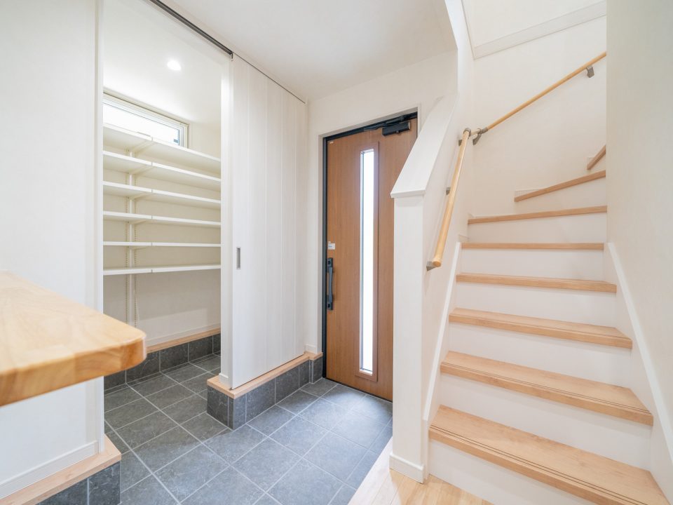 家族みんなのシューズはもちろん、ベビーカーやアウトドアグッズも収納できるハイスぺ玄関