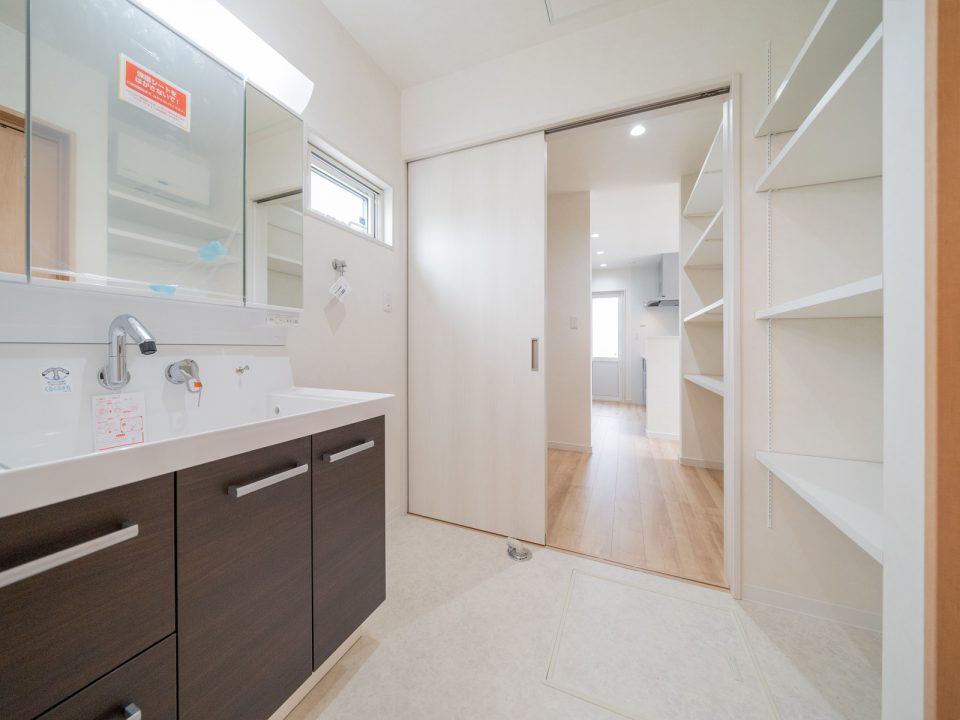 玄関→洗面室→多目的パントリー→LDKへとつながる導線