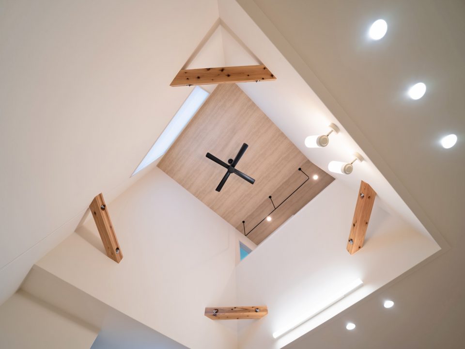 上部は吹き抜けでスッキリした住まいを実現しています。 -