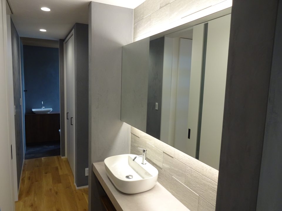 壁にはこだわりのエコカラットを採用し間接照明でふんわりと雰囲気をだしています。 -