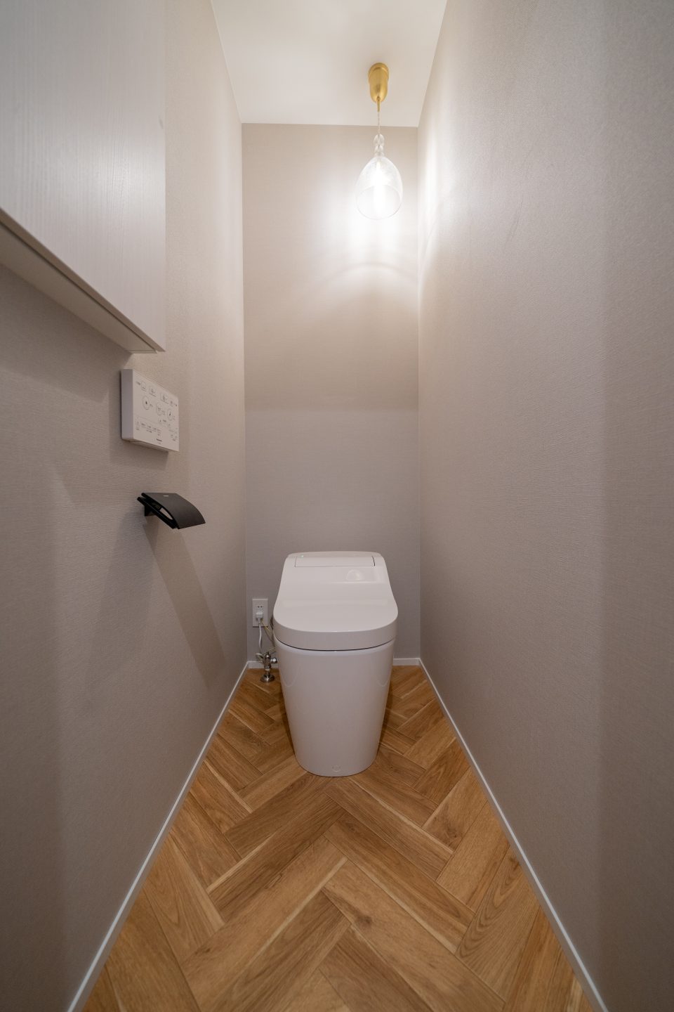 施主支給の収納・照明が映えるトイレ空間