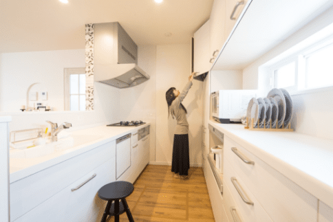 大人1人がいてもこの広さのキッチン、狭くないのに収納がたくさんできます。