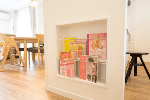 「ニッチを多く作ってほしい」というママの希望どおり、至る所に本や雑誌を飾って空間を演出。またリビングをスッキリみせる役割もあります。