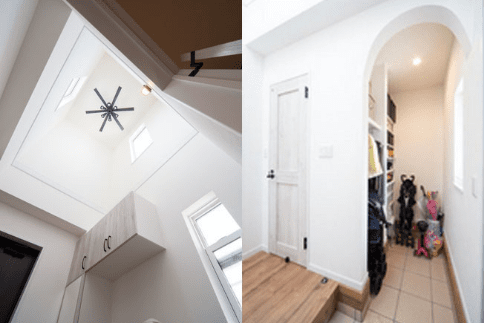 エントランスの高い吹き抜けと広々としたシューズクローク。家全体の作りもお住まいの家族に合わせて設計していくことがポイントです。