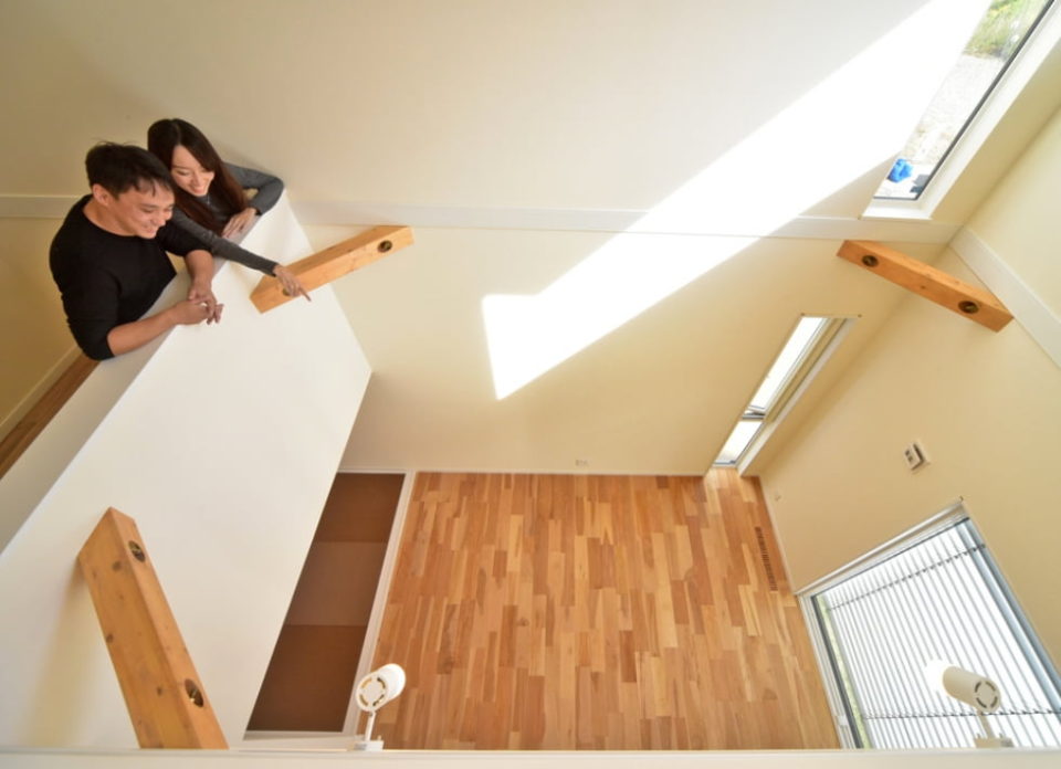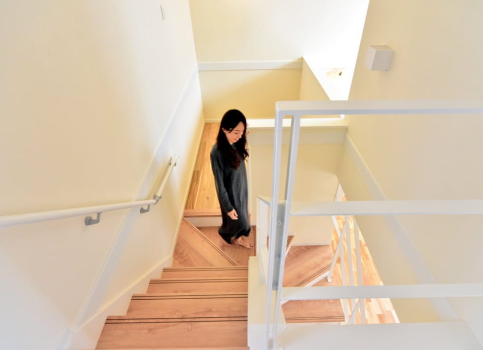 さらに一番人が集まるリビング部分の1階には傷がつきにくいタイプを、スキップフロアには明るい色目のホワイトウォールナット、2階にはやわらかいタイプを選ぶなど、それぞれの階の無垢材の種類を変えるというこだわりも!