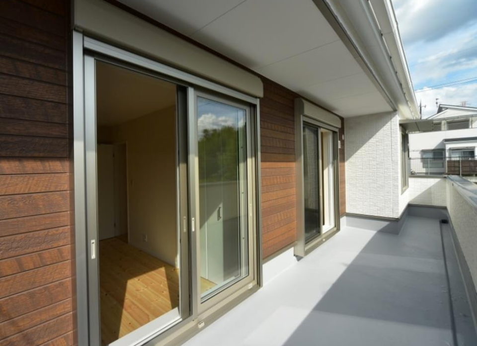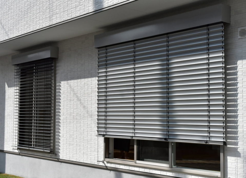 左は開いた状態、右は閉じた状態。外からの視線の目隠しにもなります。夏は太陽エネルギーを81%もカット!!