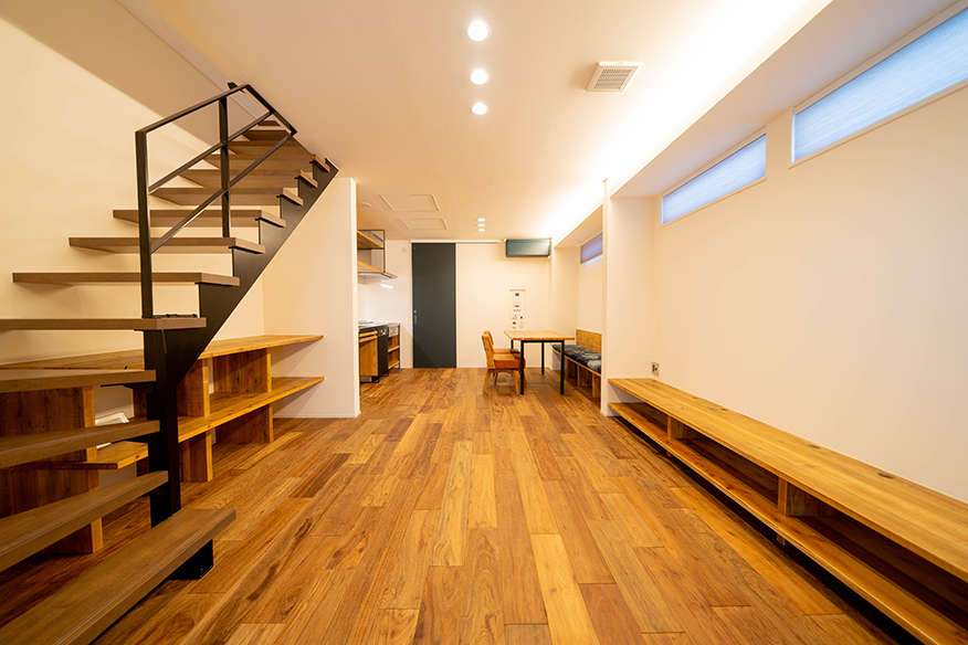 友人や家族たちとリビングで大宴会できる家。